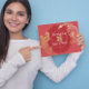 Convite Vermelho de Casamento Chinês Moderno Dragã