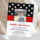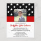 Celebre a sua formatura e convide amigos e familiares para a sua festa de formatura de bombeiros com este convite para a graduação do Thin Red Line Firefighter - design de bandeira americana em cores de bandeira do bombeiro, design angustiado. Personalize com fotos, nome, local de endereço e detalhes de rsvp. Este convite para a graduação do bombeiro pode ser usado para a aposentadoria do bombeiro, simplesmente mude o texto ao personalizar.Veja nossa coleção de presentes, favoritos para festas e suprimentos para a graduação do bombeiro. COPYRIGHT © 2020 Judy Burrows, Black Dog Art - Todos Os Direitos Reservados. Convite Vermelho de Foto para Graduação de Bombeiros de Orçamento