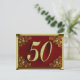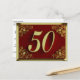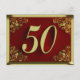Cartão postal real decorado com texto dourado e floreios ornamentados nos cantos com fundo vermelho escuro para 50 anos de aniversário. Dependendo do texto inserido, pode ser usado como convite ou cartão de felicitações.