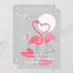 Um par de flamingos cor-de-rosa com pescoços curvados formando um coração ficam no mar numa praia ao luar. Um design elegante e romântico com um toque retrô criado numa paleta de cores rosa, cinza e branco com um fundo que muda de cor. Um design personalizável para você adaptar com seu próprio texto, imagens e ideias. Uma imagem original de arte digital.