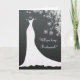 Vestido de noiva branco sobre fundo preto e padrão florido de renda Cartão de saudação de pedido de madrinha. Você pode ajustar o texto de acordo com suas necessidades. Algumas imagens são do design Riefka em www.mygrafico.com