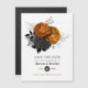 O casamento do Dia das Bruxas com laranja e preto magnético floral magnético floral com o tema das Halloween salva a data que convida personalizável para suas especificidades.