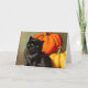 Cartão com um gato preto e abóboras vintage do Halloween! Esta pequena bola de pelo fica adoravelmente ao lado de duas abóboras laranja. Um presente de excelente para festas de Halloween e amantes de gatos!