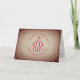 Aniversário temático do circo com ilustração de uma tenda de circo listrada vermelha e branca, coberta com bandeira sobre design de rajada solar castanha, com texto vermelho e branco e contorno em forma de bilhete.