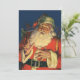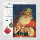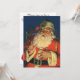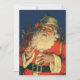 Ilustração vintage design de férias Feliz Natal com um Papai Noel feliz e alegre com uma longa barba branca e um chapéu carregando um saco cheio de brinquedos na véspera de Natal.