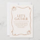 Ponha um tom quente e moderno para Ação de Graças ou Ação de Amizade com este convite minimalista, com uma faixa desenhada à mão e pequenos sotaques de abóbora em tons de canela confortáveis. Clique em Personalizar este modelo para atualizar nomes de host, data, hora, endereço, RSVP e notas (detalhes do potluck, código de vestido, etc.); você também pode ajustar fontes e cores na Ferramenta Design. Impresso profissionalmente como uma placa simples de 5" × 7" na sua escolha de papéis premium (Matte, Felt, Linen, Pearl Shimmer, Kraft ou Reciclado).