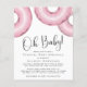 Este convite para a bebê, fofo e econômico, apresenta rosquinhas cor-de-rosa cintilantes e pastel com sotaques falso e rotinas prateadas e "Oh Baby!" em um roteiro de na moda. Você pode personalizar facilmente com os detalhes do evento online.