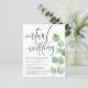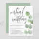Convite para Casamento Virtual Eucalyptus. Um alternativo de 4,5 pol x 5,6 pol com preço inferior. Disponível em um STOCK DE CARTÃO SEMI-GLOSS 110 lb, que é a opção padrão (mais espesso para convites), OU um STOCK de PAPEL THINNER FINISH 80 lb FINISH (ideal para gabinetes). Os envelopes são um extra opcional e são ligeiramente maiores que o tamanho da placa. Se as circunstâncias atuais significam que o distanciamento social é essencial ou para aqueles tempos em que você deseja compartilhar seus votos com aqueles que vivem longe demais para se juntar a você pessoalmente, uma cerimônia virtual via transmissão ao vivo é a próxima melhor coisa. Este design mínimo, mas na moda, tem uma ramificação de eucalipto de solteiro que executa o comprimento do lado direito, com um script de conjunto informal para o cabeçalho Virtual Wedding. O resto do texto pode ser facilmente personalizado para seus próprios detalhes. Você também pode alterar o estilo e a cor da fonte do texto editável, se desejar, por meio da opção Personalizar mais, bem como as cores de fundo na frente e no verso. Você também pode considerar o nome individual convidado e as etiquetas de endereço disponíveis nesta coleção para fazer um trabalho mais leve das suas cartas de casamento.