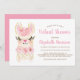 Simples e doce convite para chás virtuais para bebês, neutro em gênero, com ilustração aquosa de um lama bonito e feminino com florais cor-de-rosa e brilho dourado. "Chá virtual" e o nome da futura mãe estão em um roteiro rosa divertido e você pode personalizar os detalhes do chá online na tipografia do ouro.