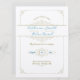 Este belo convite de casamento inspirado no Vitoriano adiciona um toque de estilo de vintagem elegante ao seu dia especial. Este convite apresenta um quadro delicado de dourado, letras neutras e azuis contra fundo branco. Perfeito para uma celebração romântica de casamento, este convite para o eterno fará com que seus convidados se sintam como se tivessem recuado no tempo.