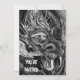Um dragão espreita em uma caverna profunda sob a terra. Convite com um design personalizável preto e branco para você personalizar com seu próprio texto, imagens e ideias. Imagem criada a partir de desenho original a tinta por Jess Perry.