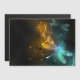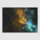 Voo de libélula brilhante, verde, desenhada artisticamente, com asas verdes e amarelas transparentes sobre fundo noturno brilhante com plantas pântanas e vagalumes. Dragonfly brilhante.