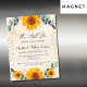 Um fundo branco e ouro, de cor aquosa, decorado com girassóis, eucalipto verde, folhas de ouro e ouros borrifados. Personalize e adicione seus nomes e detalhes da festa.