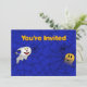 Um adorável convite para festas de Halloween com dois fantasmas numa teia de aranha. Apenas preencha as informações da sua festa.