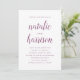 Convide amados a atender a seu dia especial com nossos convites do casamento da simplicidade. Os convites minimalistas do casamento combinam a caligrafia elegante com um esquema de cores roxo e branco da ameixa. Personalize os convites de casamento com seus detalhes do casamento.