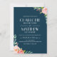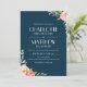 Convite à moda e elegante do casamento que caracteriza rosas pintados da aguarela com um fundo do marinho. Você pode personalizar o fundo a uma cor da sua escolha. Selecione uma forma cortada ou um papel textured para um toque luxuoso extra. Misture e elementos do fósforo desta coleção para um grupo sem emenda e elegante do convite.