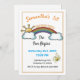 Este convite de aniversário branco e colorido para crianças apresenta um feliz arco-íris e um sol sorridente anunciando a data e a hora da festa do seu filho.