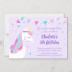 Convite Whimsic Rainbow Unicorn 5 Birthday Roxo