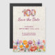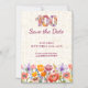 Celebrate a truly special 100th birthday with this elegant wildflower save the date. A soft linen-look background, floral-filled “100” and watercolor wildflowers in pink, purple and orange create a chic garden-party feel. Personalize the name, date and wording to let family and friends mark this incredible milestone on their calendars. Enjoy!