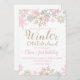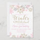 Winter ONEderland Primeiro convite para o aniversário com flocos de neve rosa, dourados e prateados