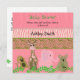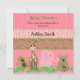 Uma doce coleção de animais de zoológico. Um macaquinho bobo, uma girafa castanha rosa e chocolate, um elefante rosa macio e um ursinho coala de cor amorosa. Uma fileira de vinhas verdes na frente delas em um fundo de impressão de animais selvagens rosa. Personalize com todas as informações do seu chá conforme desejado.