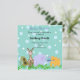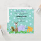 Uma doce coleção de animais de zoológico. Um macaquinho bobo, uma girafa avistada, um elefante balançando uma bola e um urso fofo. Uma fileira de vinhas verdes na frente delas em um fundo de bolinhas. Personalize com todas as informações do seu chá conforme desejado.
