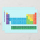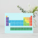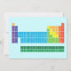 Convite com a tabela periódica dos elementos, com cada grupo de elementos marcado em cores do arco-íris.