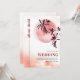 Um galho de aquarela e o convite para casamento do Japão com um código QR. Este convite de casamento no tema japonês apresenta uma delicada ramificação de aquarela e ilustração de lua de cheio sereno. O design é simples, com uma linha vertical se estendendo para cima sobre a adição dos nomes dos casais. O teracotta quente e a paleta vermelha-marrom acrescentam um toque convidativo. O verso do convite continua o fundo aquarela e a linha vertical para um olhar coeso. A data do casamento é mostrada elegantemente, juntamente com um código QR para RSVP on-line fácil. Esse detalhe moderno acrescenta um elemento de conhecimento técnico ao convite tradicional.