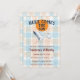 Este convite de chá de bebê editável apresenta uma adorável cegonha ilustrada voando à frente do sol brilhante boho. O fundo é um suave xadrez em aquarela.