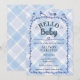 Convites 004 Indigo Watercolor Gingham Birds Baby Shower