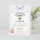 A sweet illustration of a squirrel cradling an acorn delivers added charm to this "A Little Acorn is on the Way" themed baby shower invitation. Rustic cottagecore appleal is added with a watercolor bow & a watercolor gingham background.