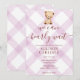Convites 006 Wine Purple Teddy Bear Gingham Baby Shower