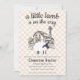 Este convite de baby shower editável apresenta um adorável cordeiro em frente a uma cena de fazenda. O fundo é um suave padrão xadrez de aquarela.