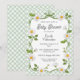 Convites 019 Forest Green Floral Daisy Plaid Baby Shower