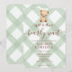Convites 019 Forest Green Teddy Bear Gingham Baby Shower