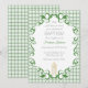 This baptism invitation features a delicate watercolor candle marked with a small cross, softly framed by graceful scrolling flourishes. Set against a light watercolor gingham background, the design has a gentle vintage feel.