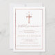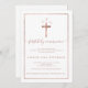 Um elegante e chic primeiro convite da comunhão sagrada com faux rosa foil cross e quadro geométrico com uma elegante borda branca. Adicione o seu monograma com uma letra de caligrafia luxuosa e florescente. Perfeito para uma festa simples, elegante e moderna. Se precisar de algum texto mudado e personalizado, não hesite em entrar em contato comigo!