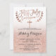 Uma primeira comunhão moderna, original e simples, falsa rosa dourado glitter ombre, com convite cruzado sobre um fundo branco totalmente personalizável