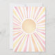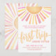 Celebre a primeira volta do seu pequeno ao redor do Sol com este convite de aniversário de 1 ano, brilhante e alegre. No topo, "Primeira Viagem" é apresentado em caligrafia em negrito, estabelecendo um tom alegre. O design apresenta um grande sol com raios vibrantes em amarelo, laranja, rosa e vermelho, criando um tema colorido e divertido. A parte inferior do convite inclui todos os detalhes do evento em uma mistura de fontes modernas e tipografia em negrito, usando cores que combinam com os raios do sol. No verso, uma versão maior do sol colorido brilha intensamente, adicionando um toque alegre. Embora este design seja ligeiramente mais direcionado para o aniversário de uma menina, ele permanece maravilhosamente neutro em termos de gênero. Se preferir uma aparência mais vívida, basta remover a camada branca transparente no editor para realçar as cores do sol. Este convite é perfeito para celebrar o primeiro ano do seu filho com uma mistura de elementos boho, retrô e modernos. Convite de Aniversário de 1 Ano Primeira Viagem ao Redor do Sol Aquarela Amarela Laranja Rosa Vermelha Fofa e Feminina.