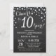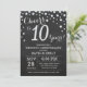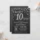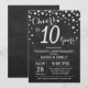 10º Aniversário de Casamento Convite Preto e Prata. Décimo Aniversário de Casamento. Fundo de Diamante Brilhante Preto e Prata. Confetes Prata. Aniversário de Adulto. Festa de Aniversário Masculina ou Feminina. Para personalização adicional, clique no botão "Personalize" e use nossa ferramenta de design para modificar este modelo.