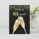 Brinde de champanhe em preto com confete colorido para 100º convite de festa de aniversário.