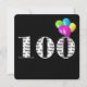 Texto preto e branco em negrito sobre fundo preto com balões coloridos para o 100º convite à festa de aniversário.