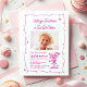 A foto do celebrante de aniversário é tirada no palco central neste convite de aniversário da Tendy Martini. Elegante e design chic apresenta um martini espresso. Um arco bonito adiciona um toque feminino. Todo o texto é editável.