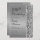 Este elegante e luxuoso brilho prateado e diamante lado 100º convite de aniversário é perfeito para sua celebração. É que as fontes quentes e modernas são nítidas e limpas e tornam este convite único e monótono como a tua mãe, irmã, tia, amiga, avó, excelente avó. A coordenação de volta é bela.