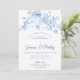 Elegante rosa floral azul de 100 anos convite de festas surpresa de aniversário.