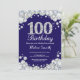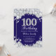 100º Convite de Aniversário. Diamante Azul marinho e Rinotraqueíte Prateada. Convidado Elegante Birthday Bash. Aniversário Adulto. Mulheres Aniversário. Homens Aniversário. Para mais personalização, clique no botão "Personalizar" e use nossa ferramenta de design para modificar este modelo.