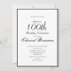 Um 100º Aniversário Monograma Pessoal de Aniversário Convite de Aniversário em Preto e Branco elegantes. A idade pode ser alterada para qualquer idade, não apenas para 100 anos. Uma foto pode estar na frente e no verso do convite pessoal. As informações são facilmente alteradas para suas próprias informações personalizadas com a palavra surpresa que pode ser removida, a idade alterada e a data de nascimento removida, se você quiser. O inverso tem a fotografia pessoal com um monograma pessoal usando o mesmo roteiro elegante que o convite.