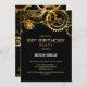 Convide seus amigos e entes queridos para o seu centenário de aniversário com este convite para ver engrenagens de relógio preto e ouro.
