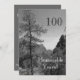 Este é um belo convite para o aniversário especial de 100 anos de alguém, com uma vista em preto e branco, de montanhas e uma árvore no primeiro plano. Perfeito para um amante da natureza! O verso do convite está pronto para ser personalizado com todos os seus detalhes.
