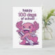 Design bonito com um axolotl vestindo uma mochila e segurando uma grande caneta com a citação "Feliz 100 dias de escola". Feliz 100º dia de escola ou jardim de infância.